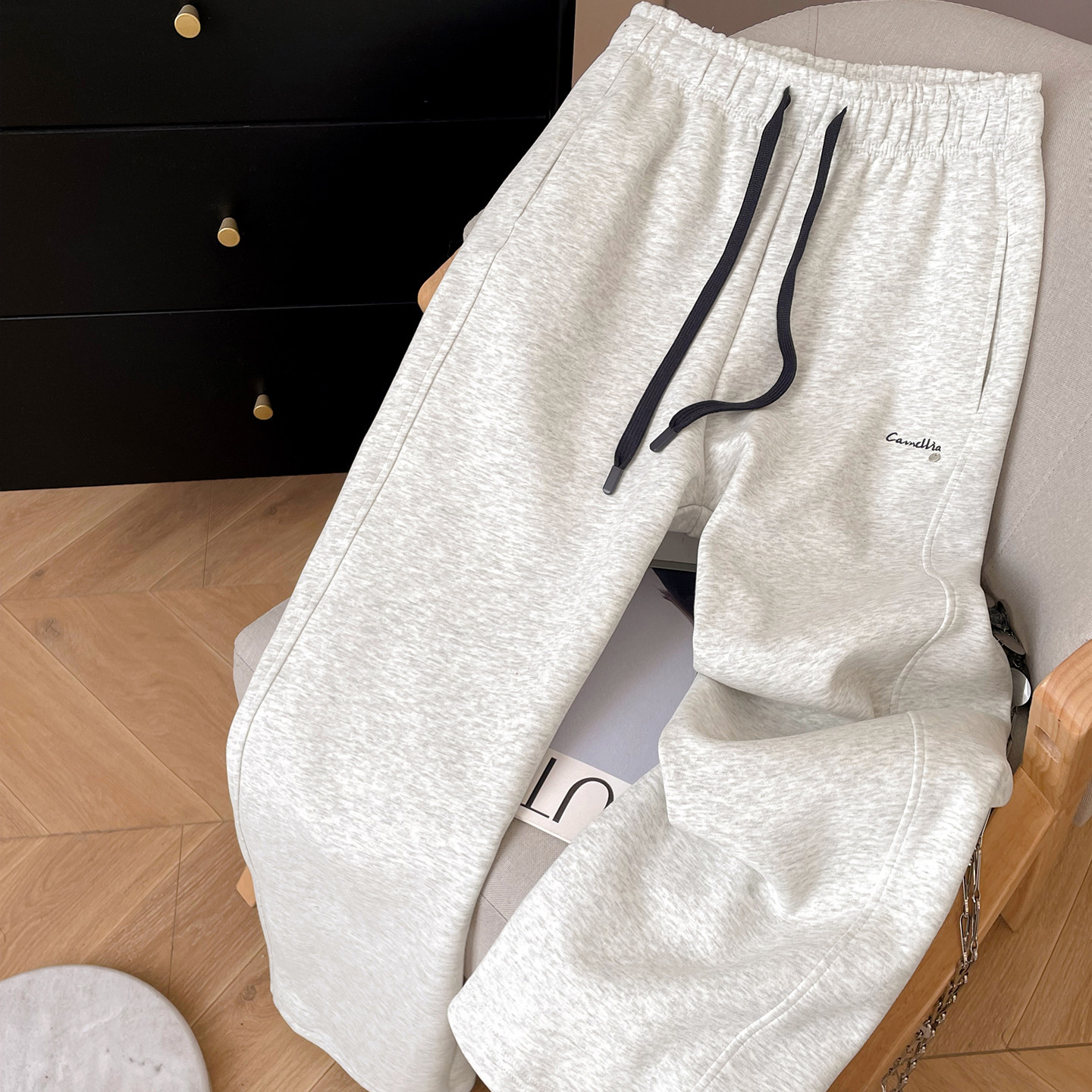 小C家 休闲运动裤女款2026新款春季宽松阔腿裤束脚裤字母刺绣卫裤