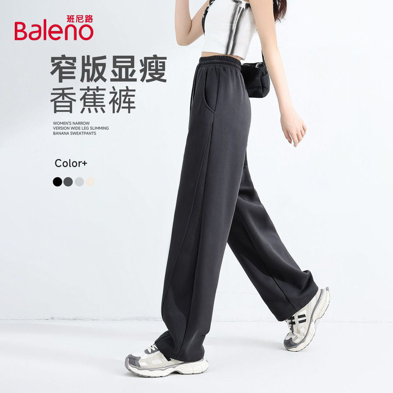 班尼路香蕉裤女2026春季新款黑色阔腿裤窄版弯刀裤休闲运动裤女Q