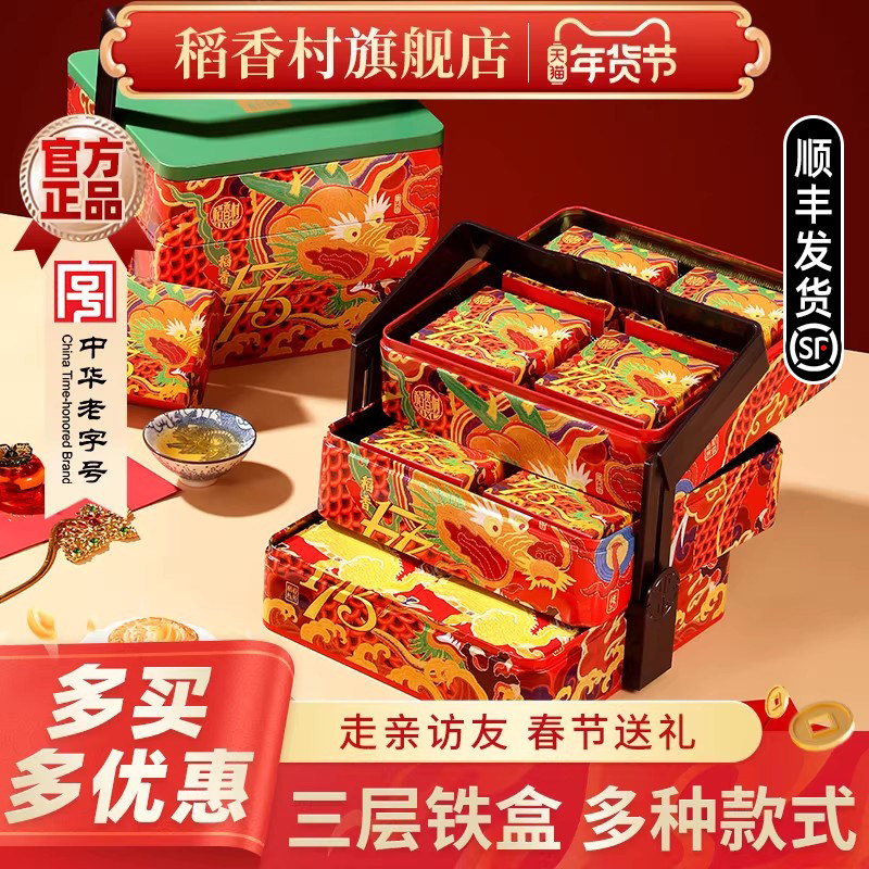 稻香村糕点春节礼盒装年货礼盒特产中式点心铁盒过年零食送礼长辈