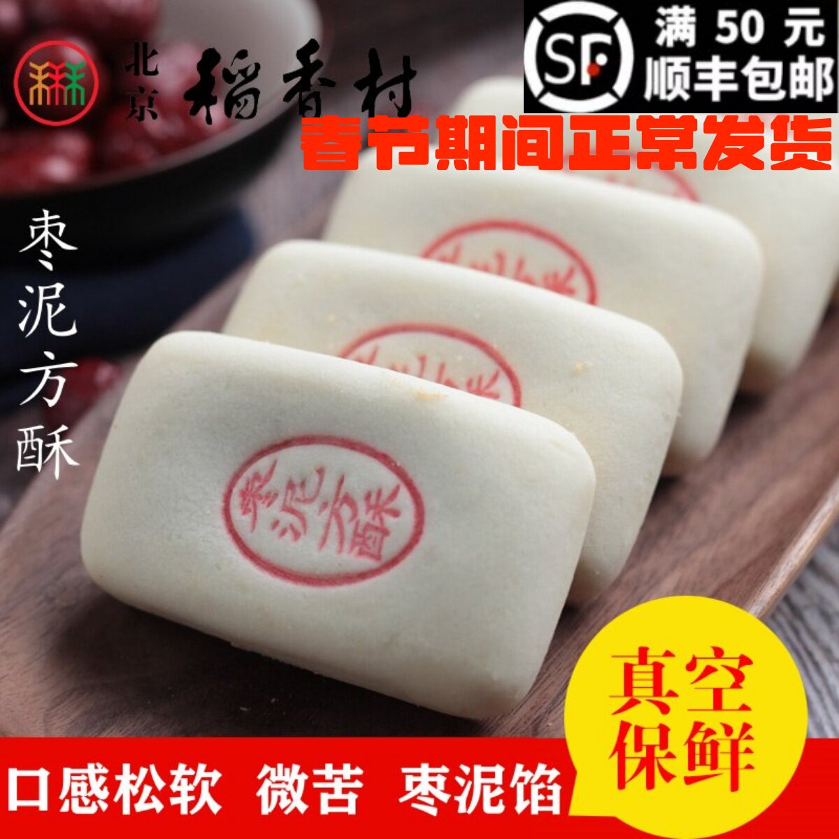4块三禾北京稻香村糕点心枣泥方酥传统特产零食小吃蛋糕散装真空