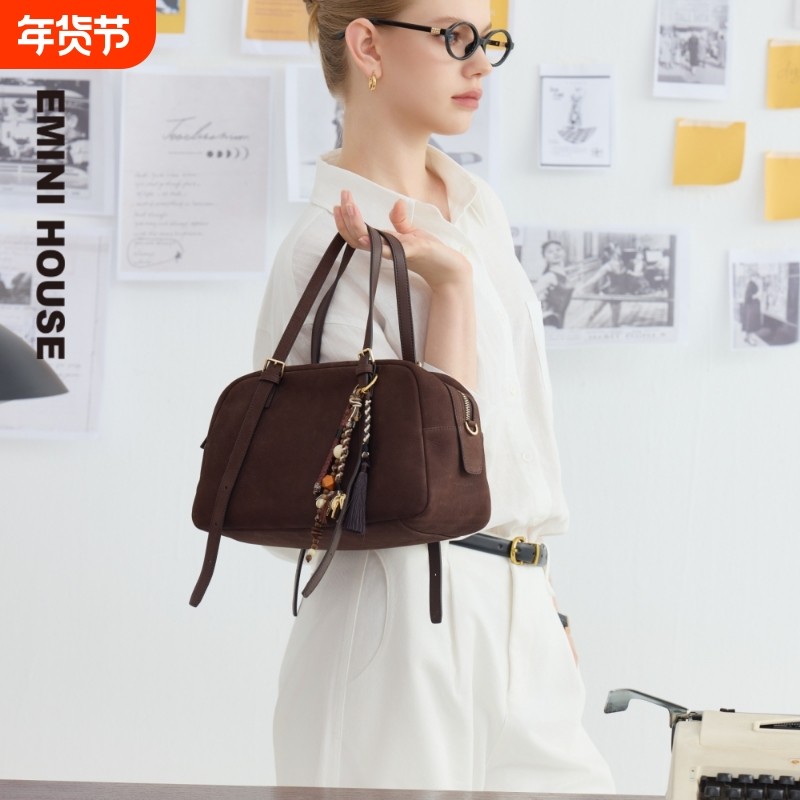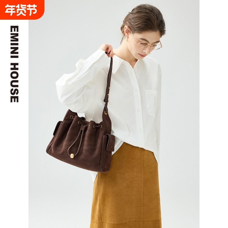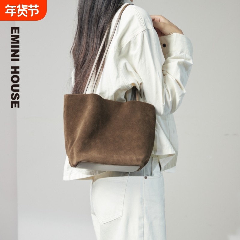 EMINI HOUSE/伊米妮反绒羊皮大容量菱格小香风单肩高级感托特包包