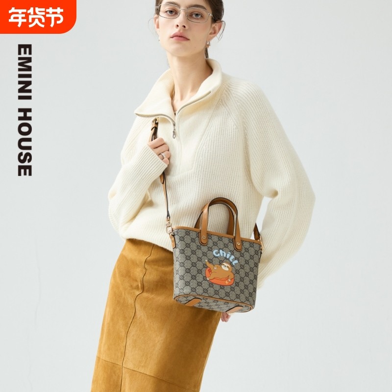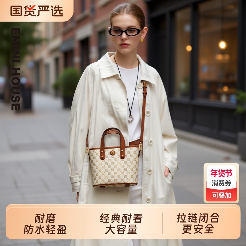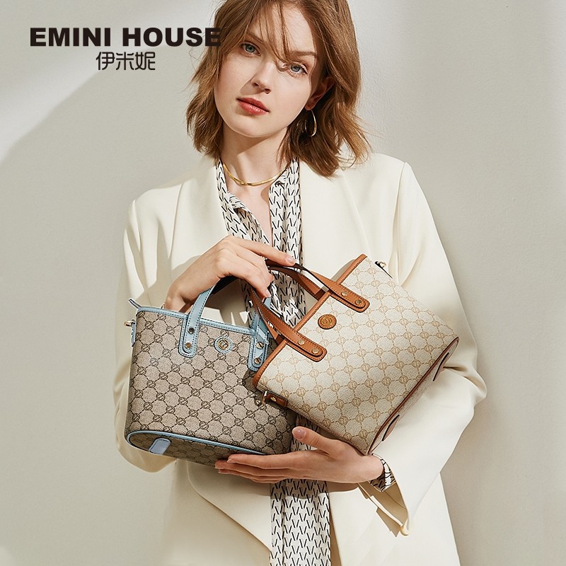 EMINI HOUSE/伊米妮菱格真皮秋冬百搭时尚小众托特包单肩斜挎包包