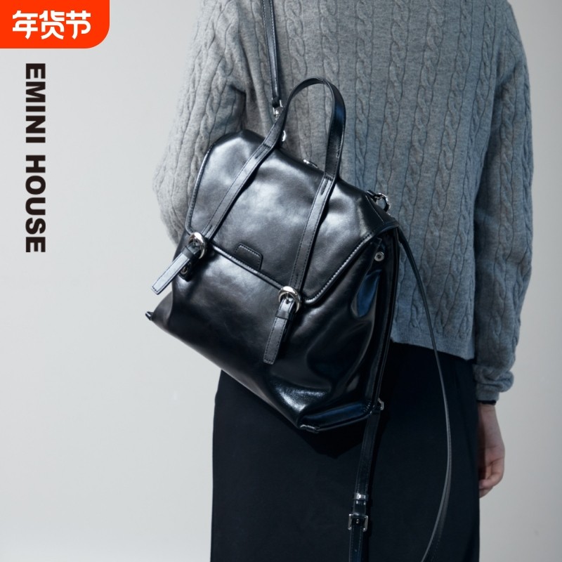 伊米妮新款油蜡牛皮手提单肩大容量双肩包高级感百搭女包背包防水