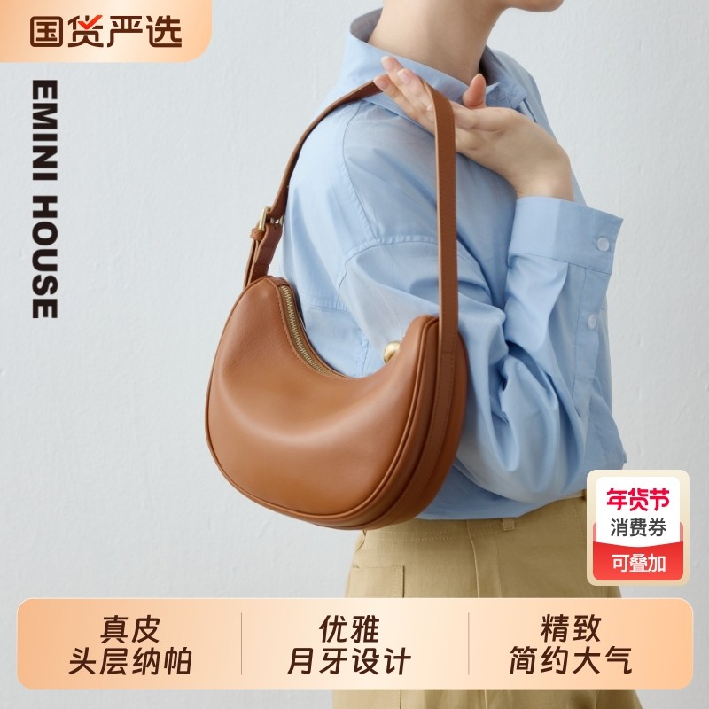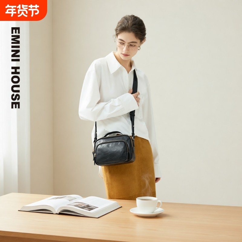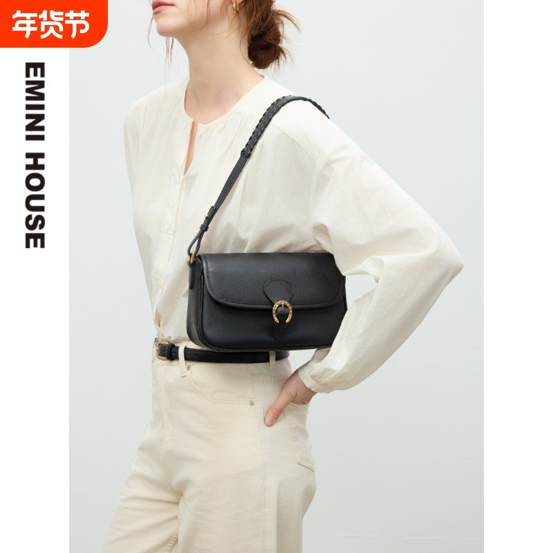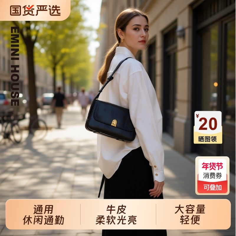 EMINI HOUSE/伊米妮真皮女包高级感时尚精致小方包通勤腋下斜挎包