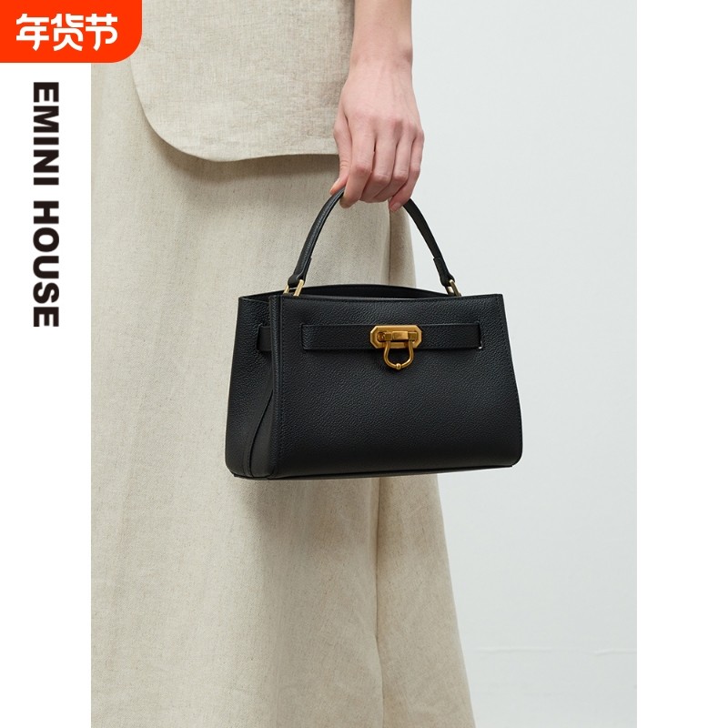 EMINIHOUSE/伊米妮头层牛皮马蹄锁手提包时尚通勤手提斜挎包气质