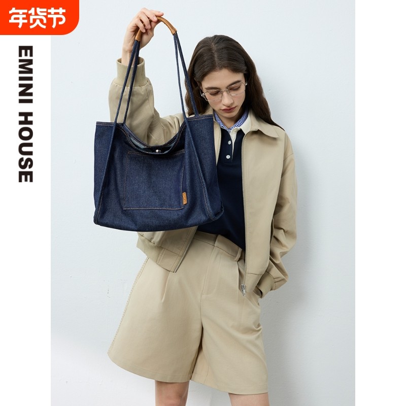 EMINI HOUSE/伊米妮牛仔布日常通勤大容量单肩托特包轻便简约时尚