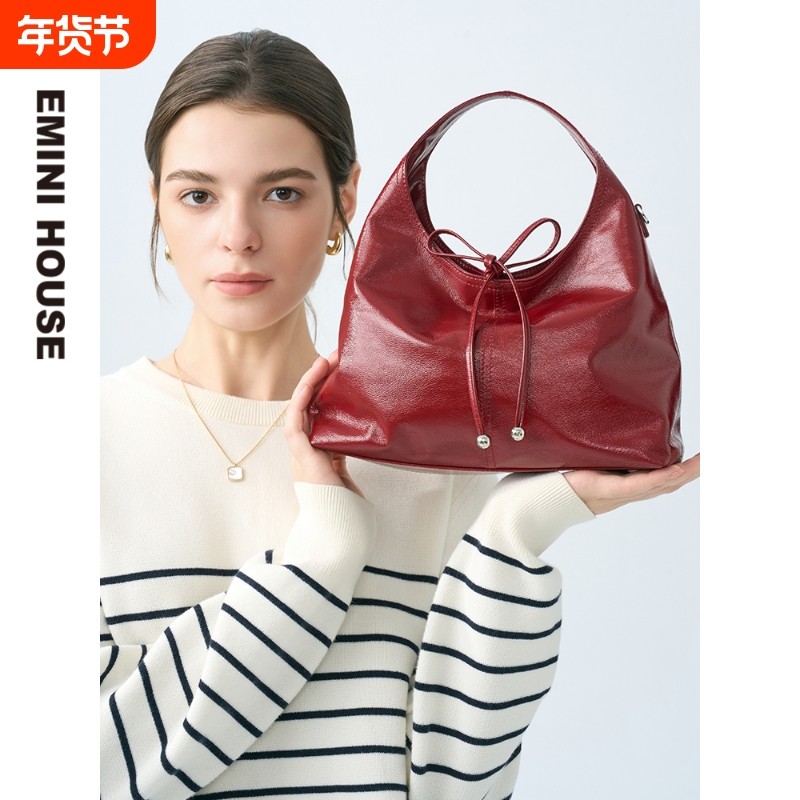 EMINIHOUSE/伊米妮真皮托特包红色新月包手提单肩斜挎包新月形