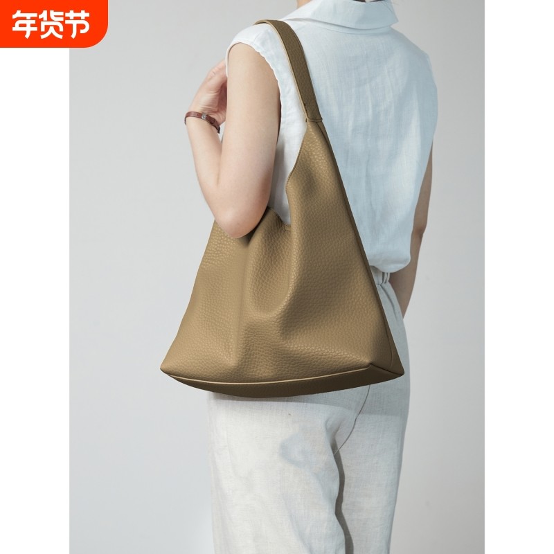 伊米妮极简托特包慵懒风头层TOGO牛皮单肩包大容量竖款女教师包包