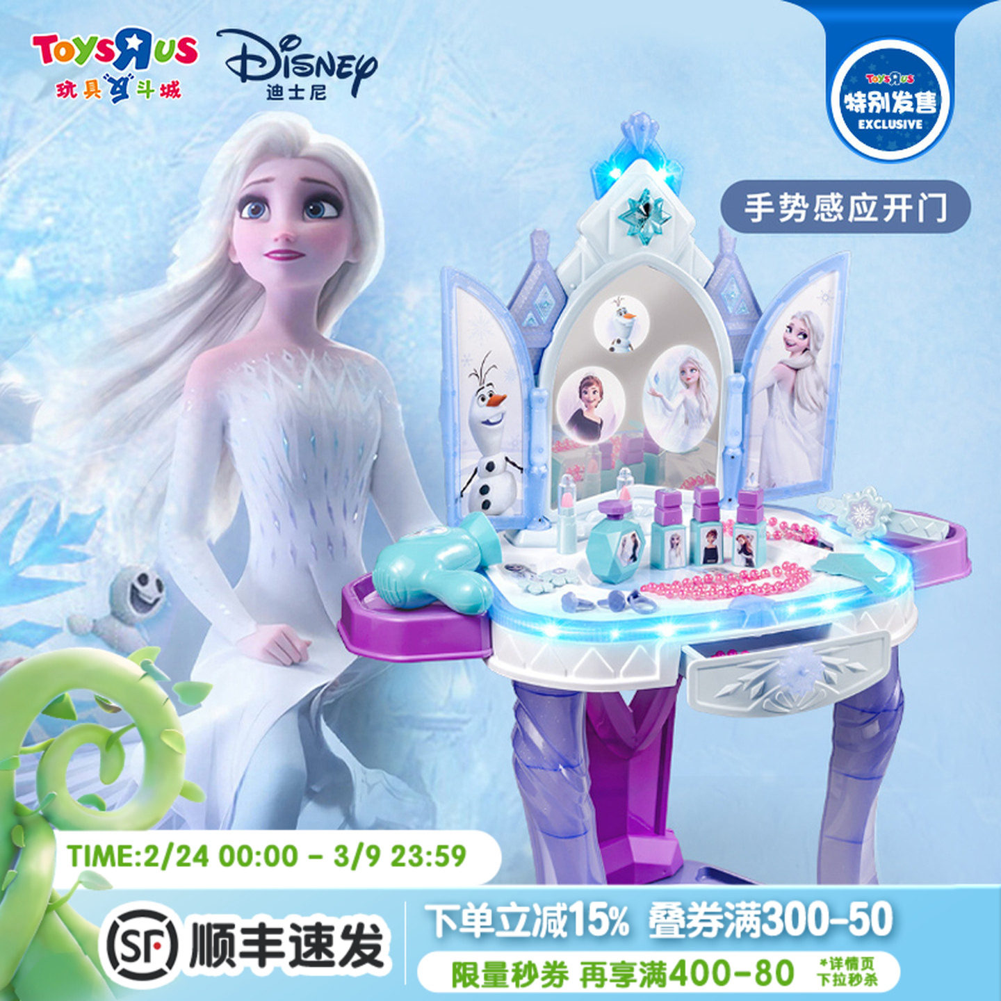 【百亿补贴】迪士尼冰雪奇缘艾莎公主儿童梳妆台女孩化妆仿真玩具