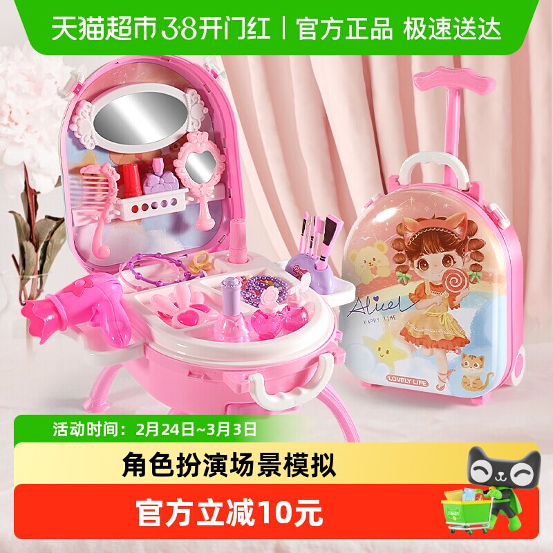 儿童梳妆台玩具女孩化妆桌行李箱手提箱三合一过家家套装新年礼物