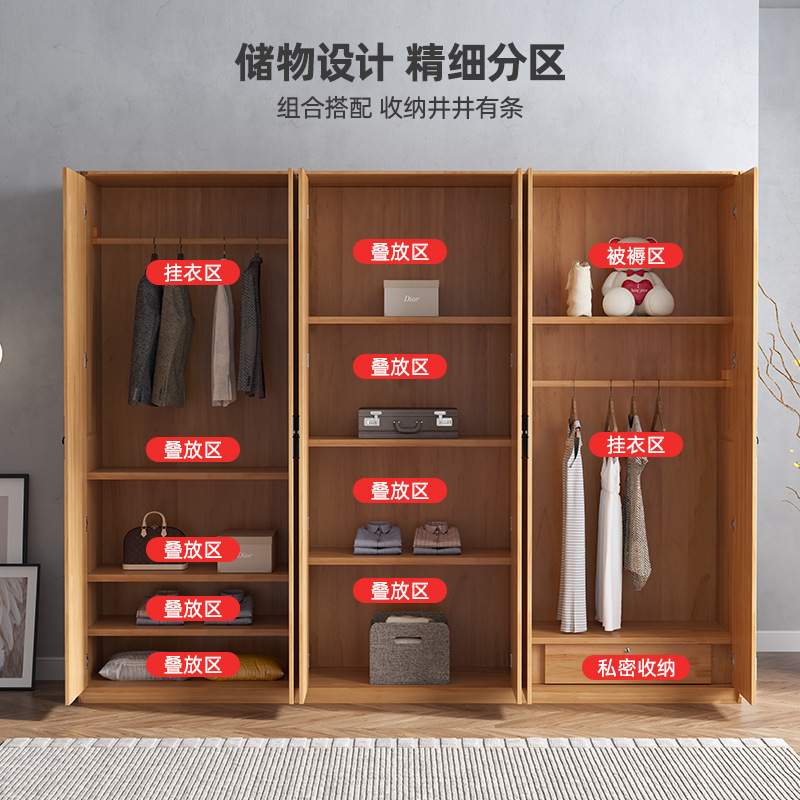 实木衣柜3门4门5门6门衣柜衣橱卧室衣柜大容量储物柜现代中式衣柜