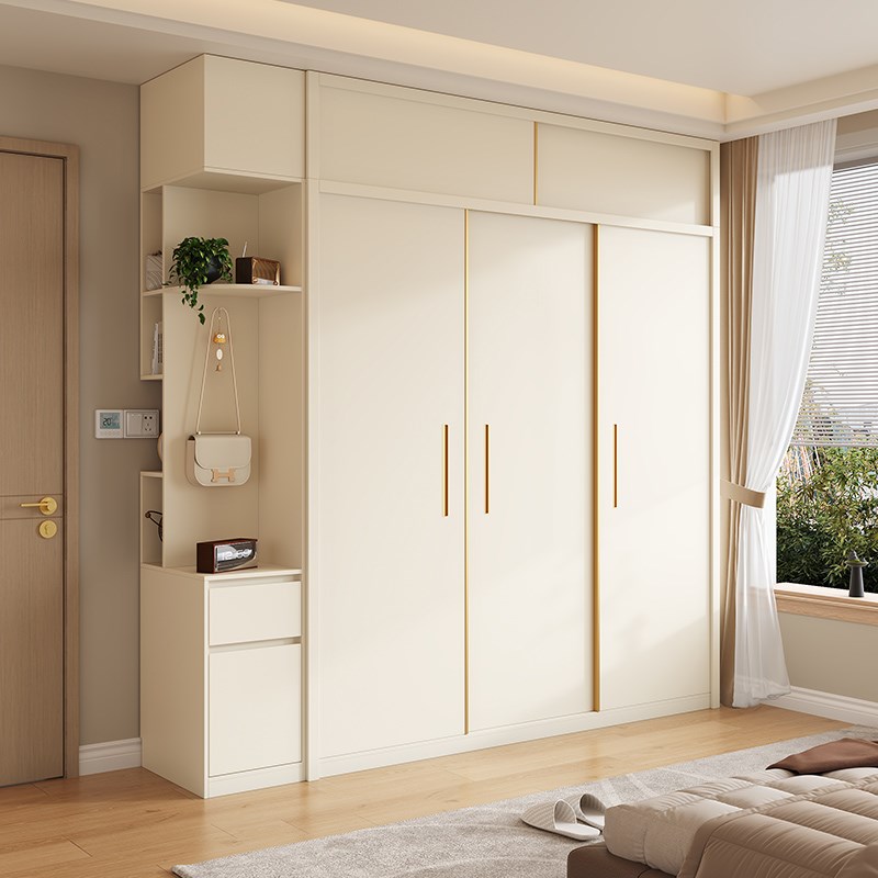 实木衣柜家用卧室奶油风推拉门衣橱现代简约出租房落地立式收纳柜