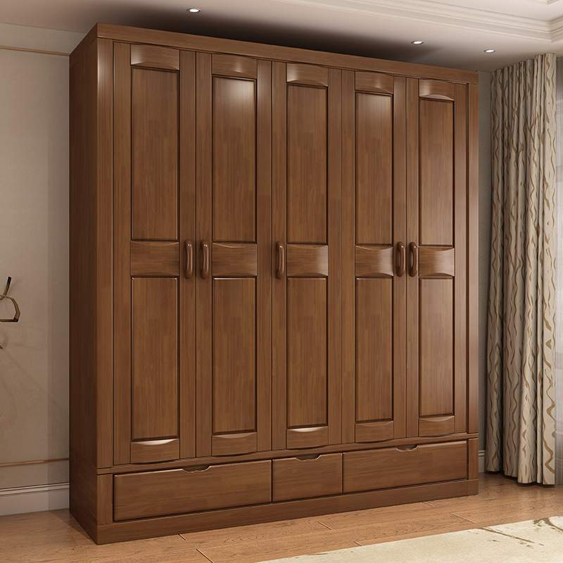 实木衣柜现代简约平开门3/4/5/6门橡胶木储物柜大衣橱简易挂衣柜