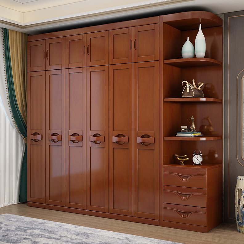 实木衣柜中式原木家用卧室大衣橱柜现代简约3四5六门转角雕花柜子