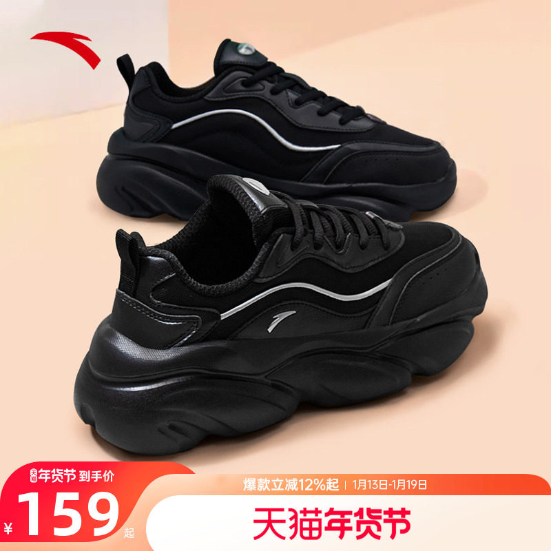 安踏女鞋喵喵鞋2025冬季爆款厚底增高老爹鞋女款全黑色运动鞋子女