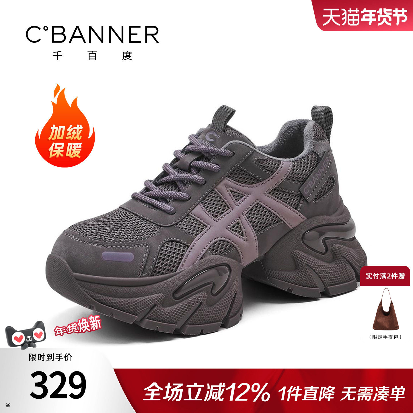 千百度老爹鞋女加绒冬季2025新款复古厚底棉鞋百搭休闲运动鞋子女