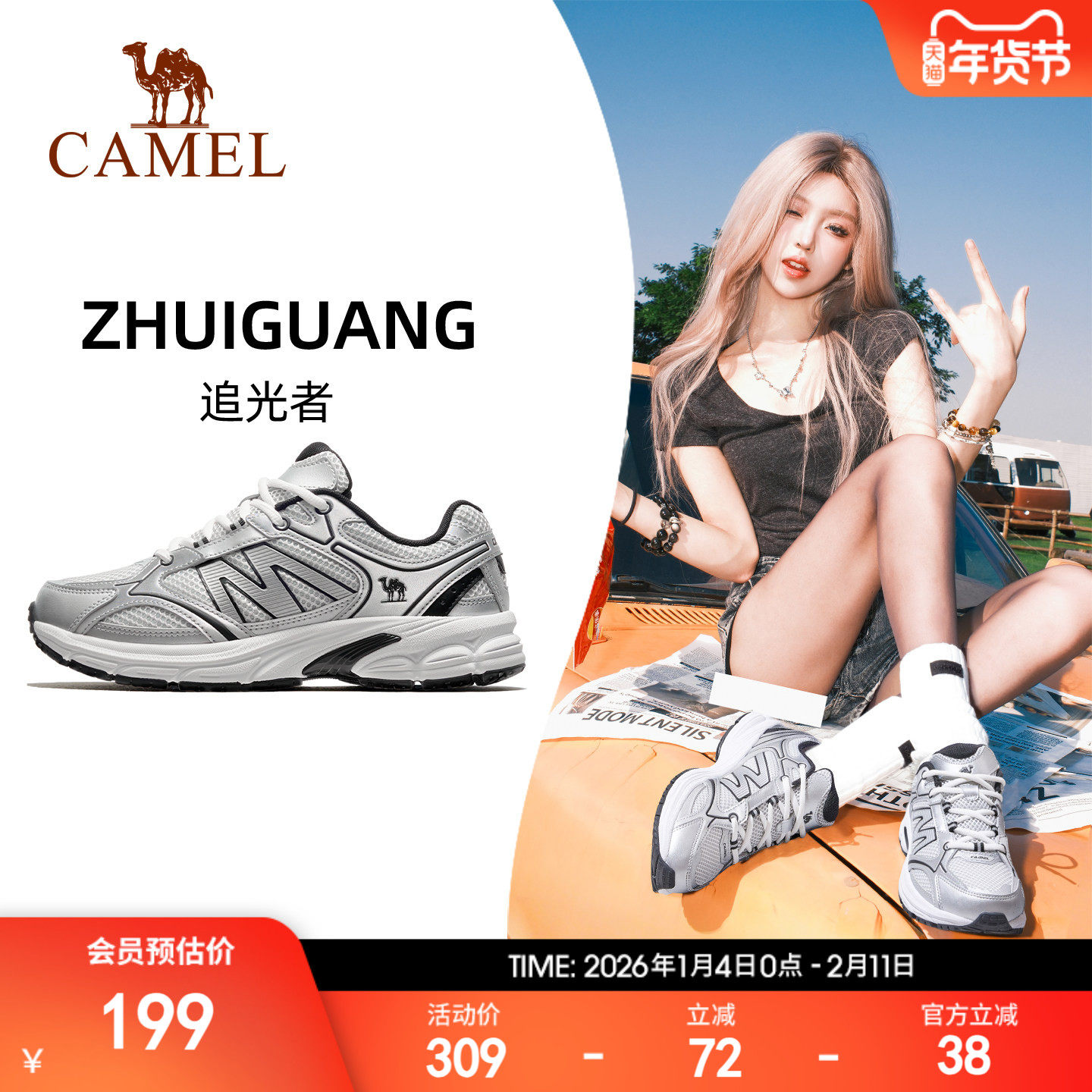 骆驼慢跑鞋女2025秋新款耐磨网面复古休闲鞋老爹鞋舒适银色运动鞋
