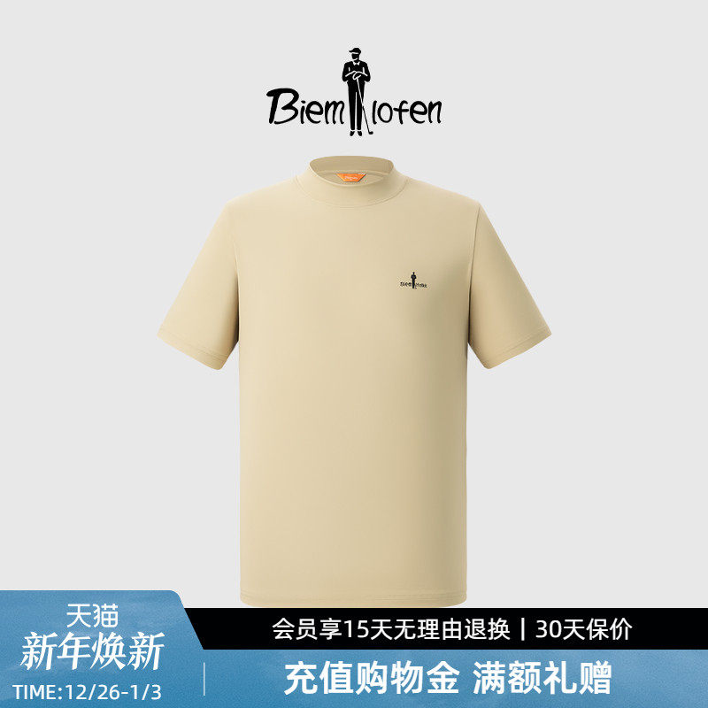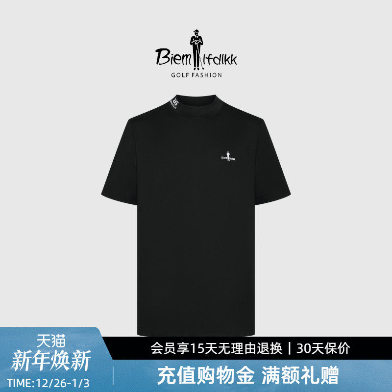 【Q弹针织面料】比音勒芬高尔夫春夏季男弹力半高领短袖T恤运动衫