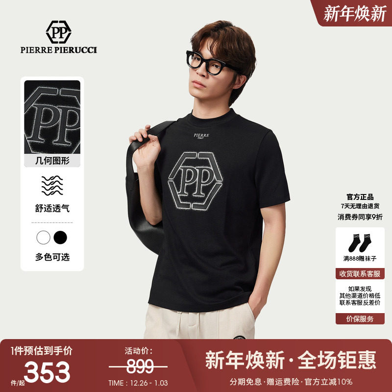 PP PIERRE PIERUCCIPP意大利轻奢男装2025春秋新款半高领短袖T恤