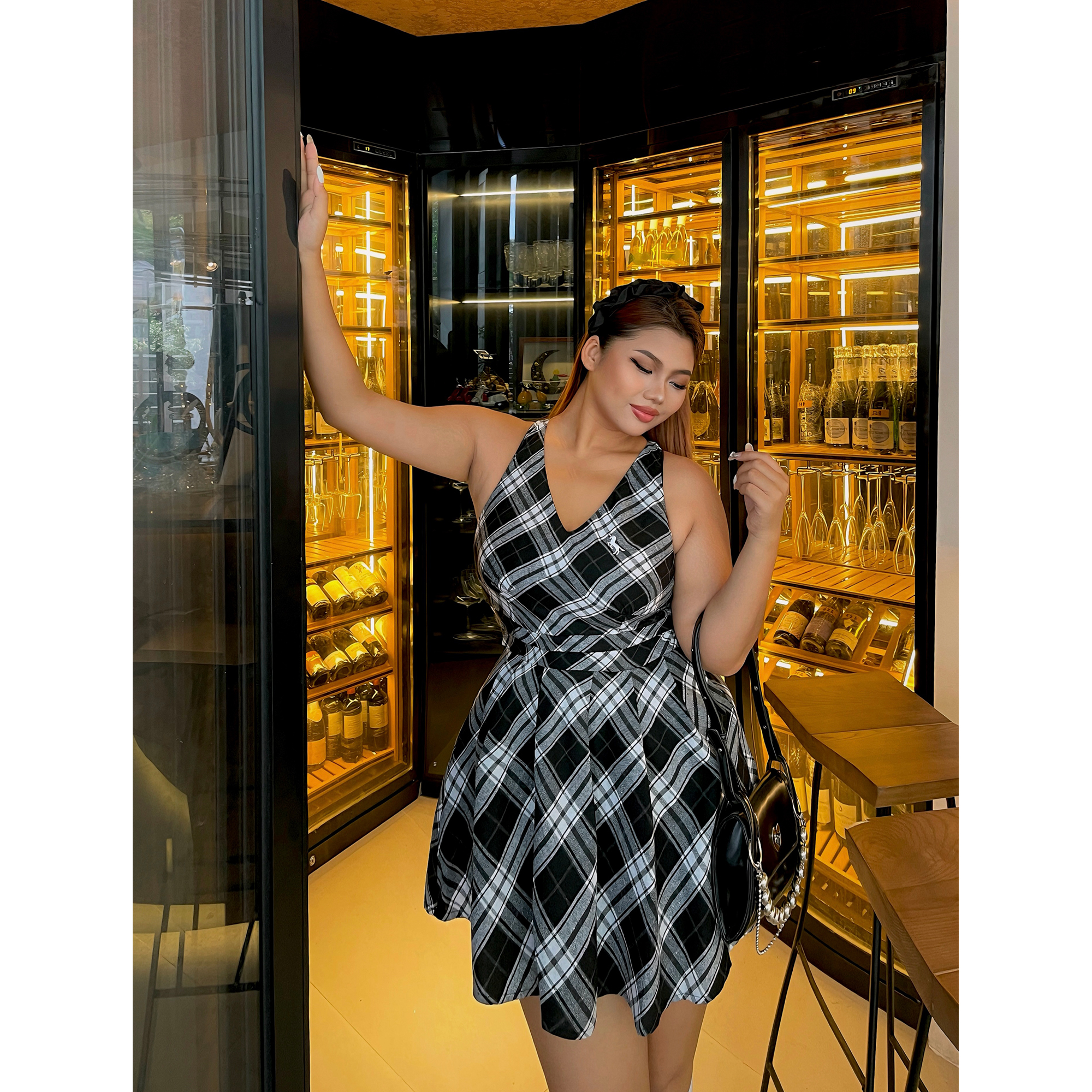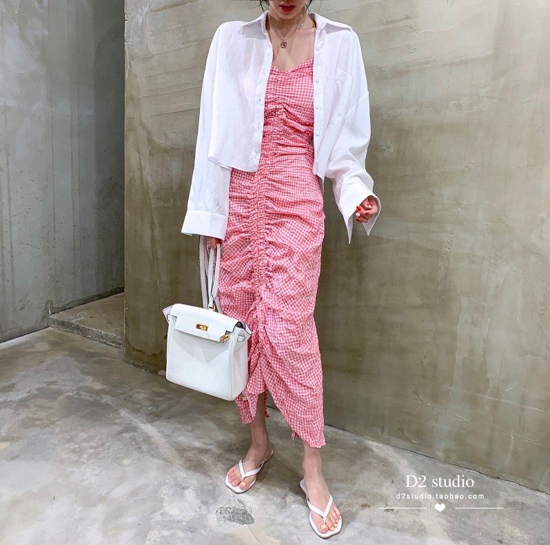 YH2.Chennnnn小宸家 搭配性GAO法式格子吊带裙收腰抹胸连衣裙春