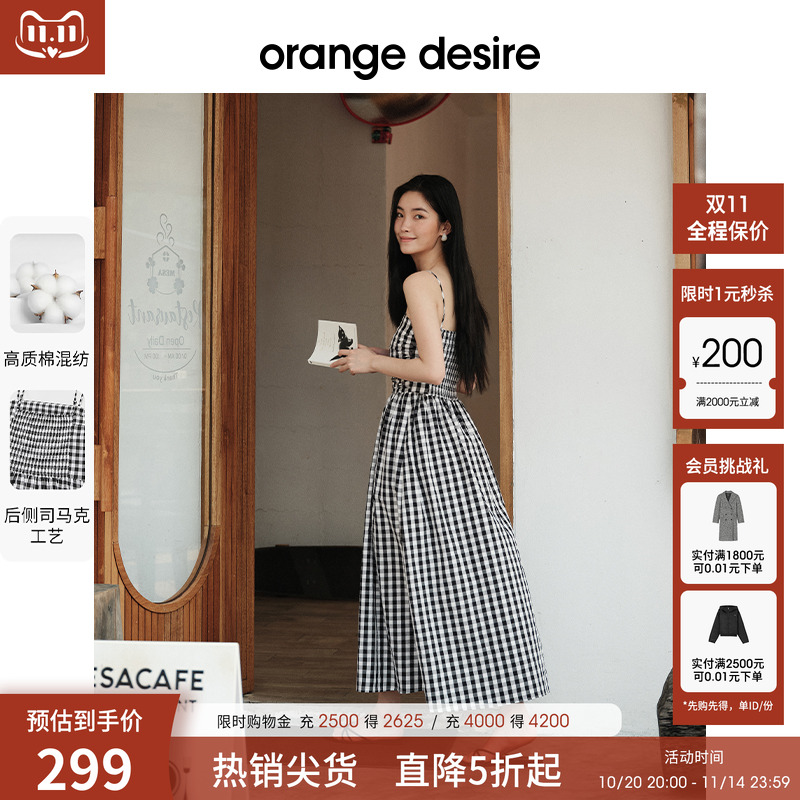 【卡尔维日记】orange desire黑白格子吊带裙2025夏新度假A字长裙