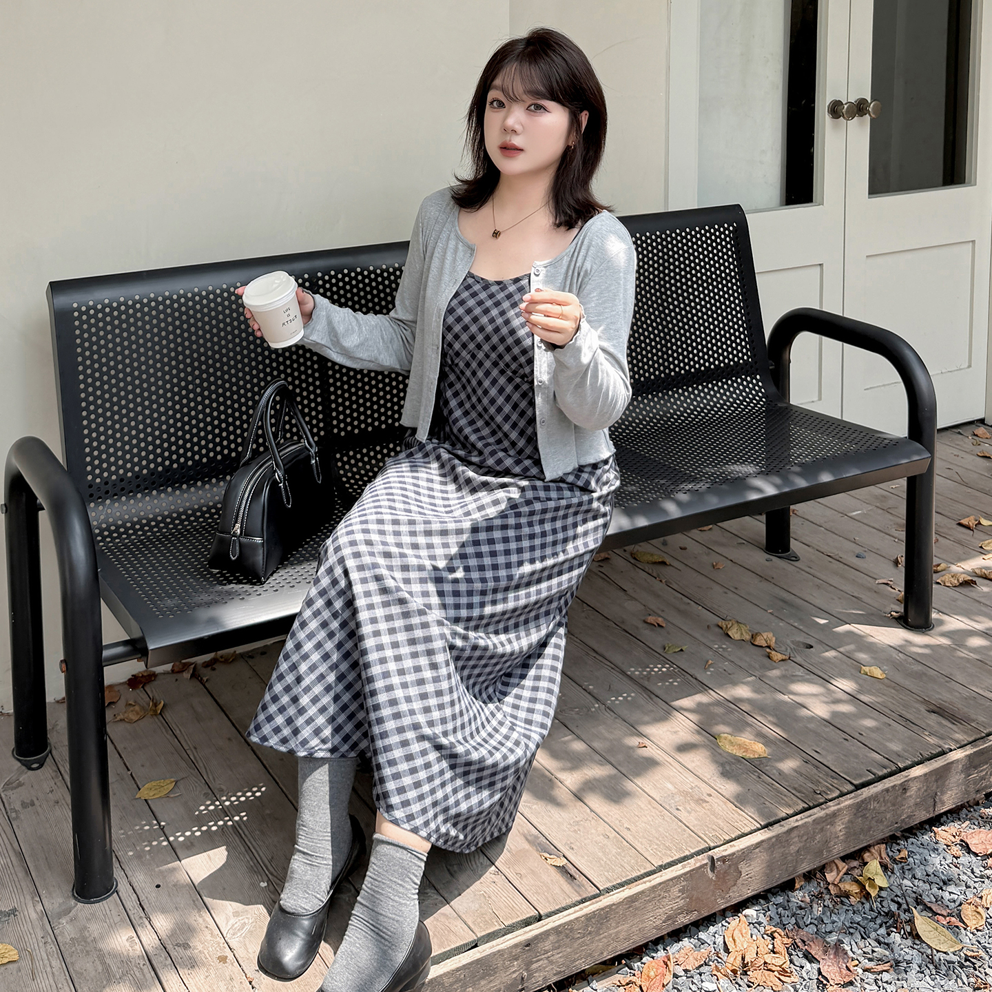 清仓特价韩国东大门性感抽皱外穿格子吊带裙套装开衫小外搭防晒衫