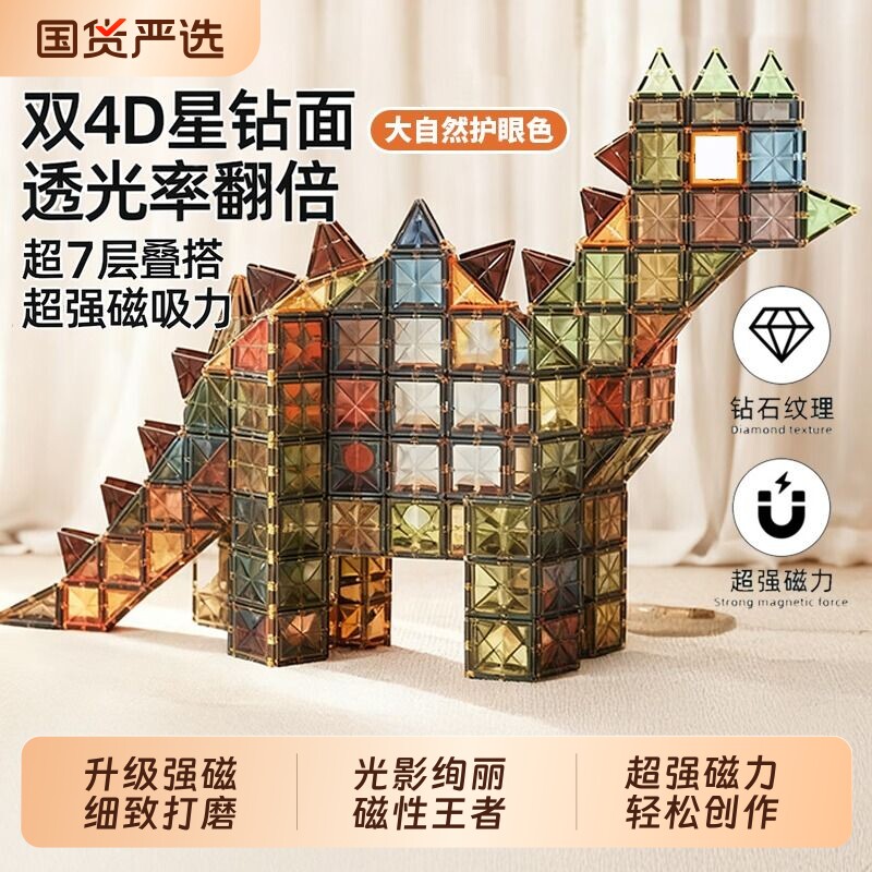 磁力片儿童益智玩具启蒙拼图男女孩彩窗拼装塑料磁吸积木小车磁铁