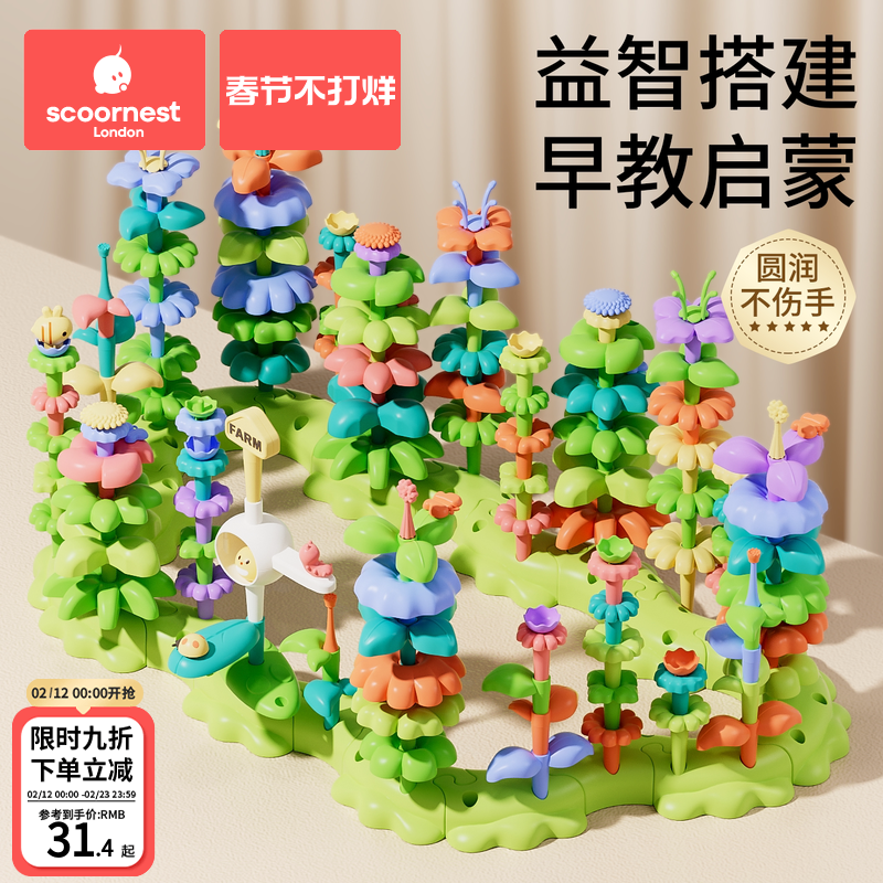 纽奇积木益智玩具女男孩百变花园插花儿童塑料拼图大颗粒拼装礼物