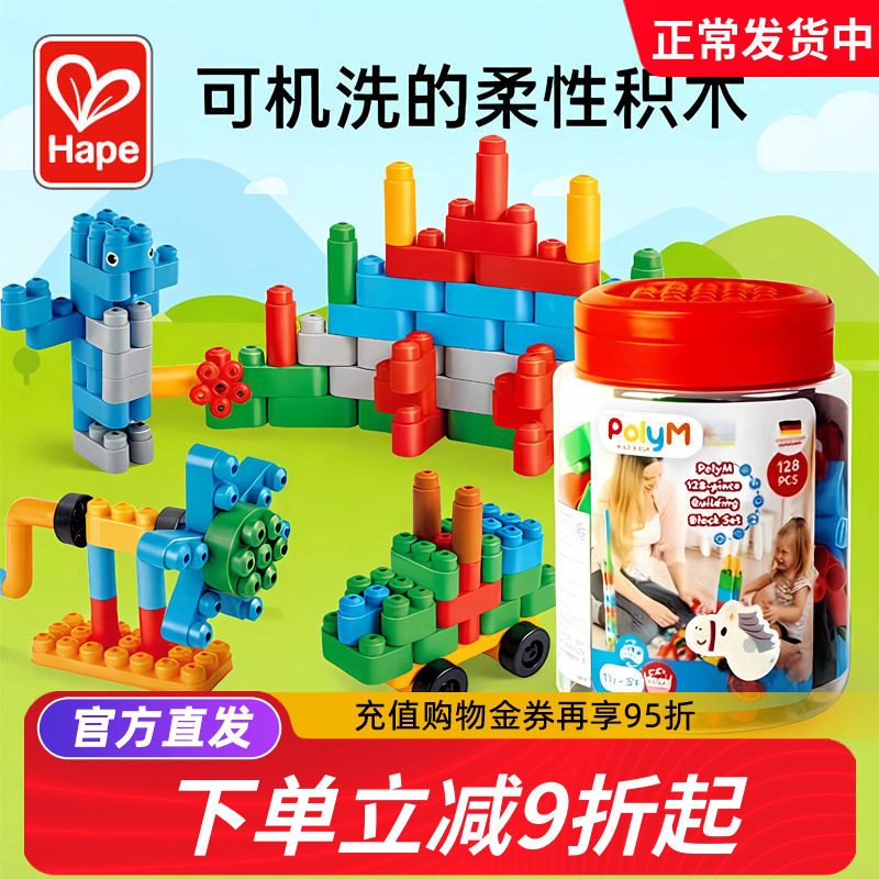 hape软积木德国PolyM128粒可机洗柔性积木塑料积木1.5-5岁软积木