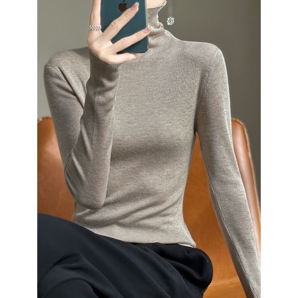精纺羊毛堆堆领长袖修身打底衫女高领套头毛衣女内搭针织毛衫上衣