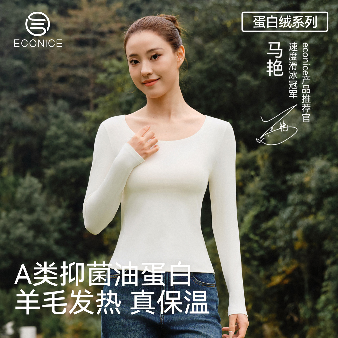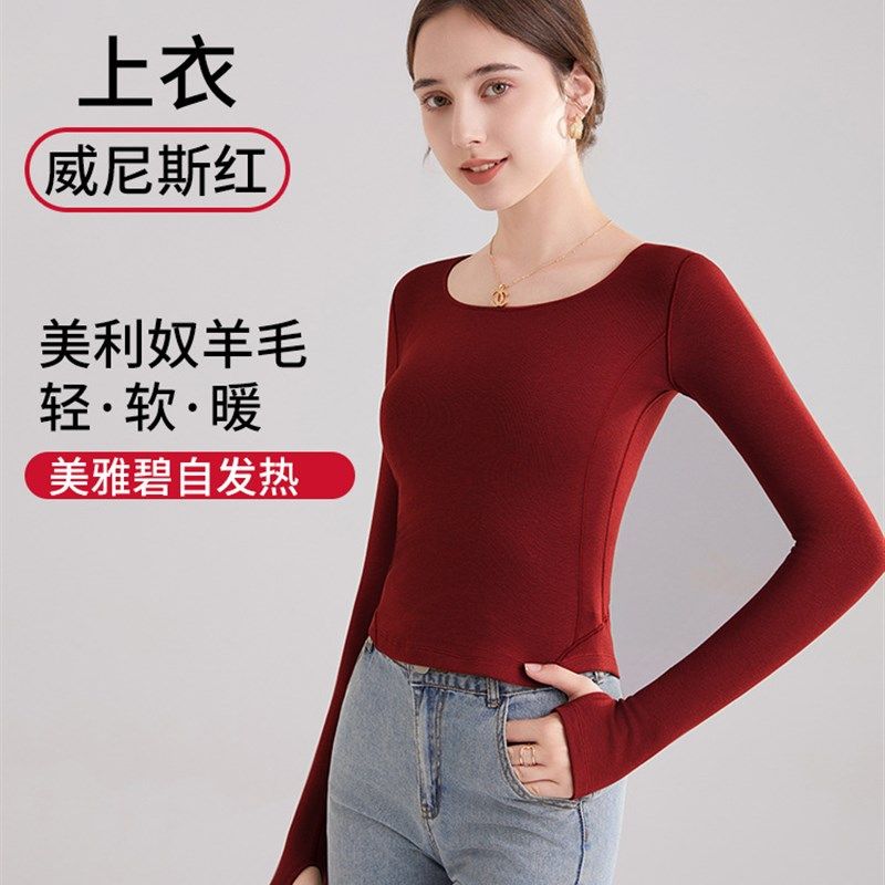 修身打底衫女冬季美利奴羊毛德绒发热蛋白绒美肤长袖t恤保暖上衣