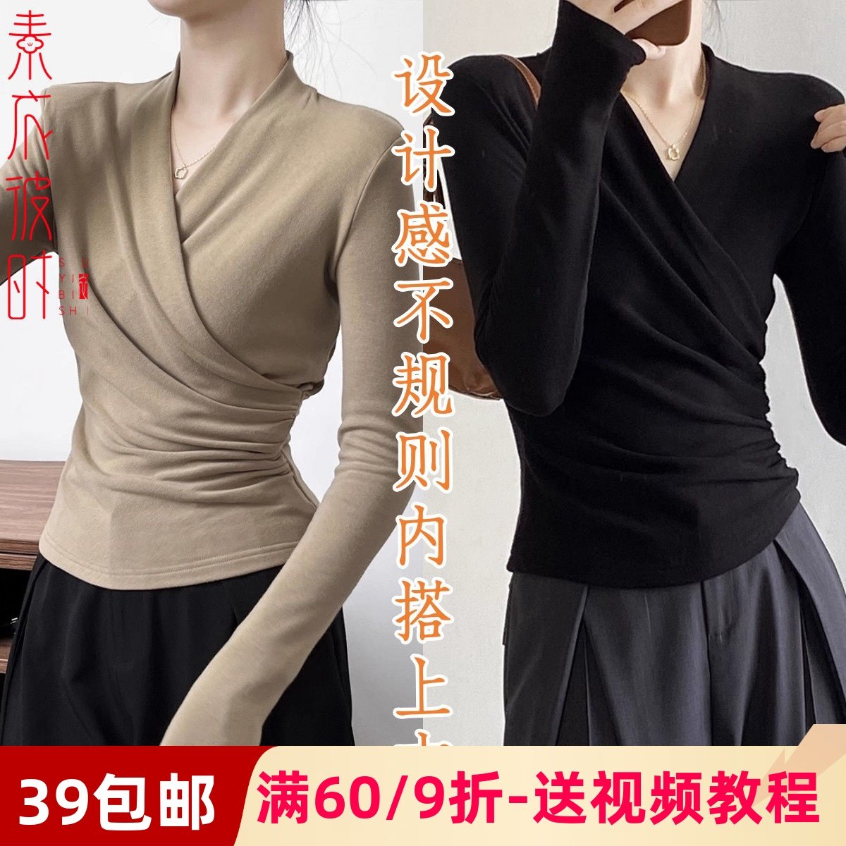 素衣彼时2834春秋不规则褶皱修身打底衫女服装纸样V领交叉T恤样板