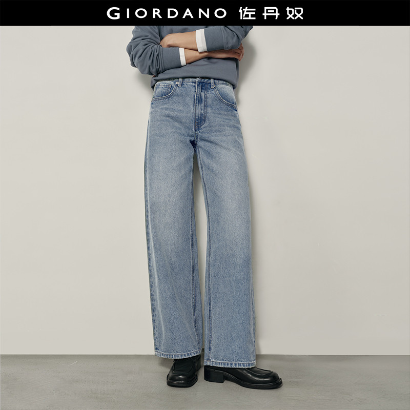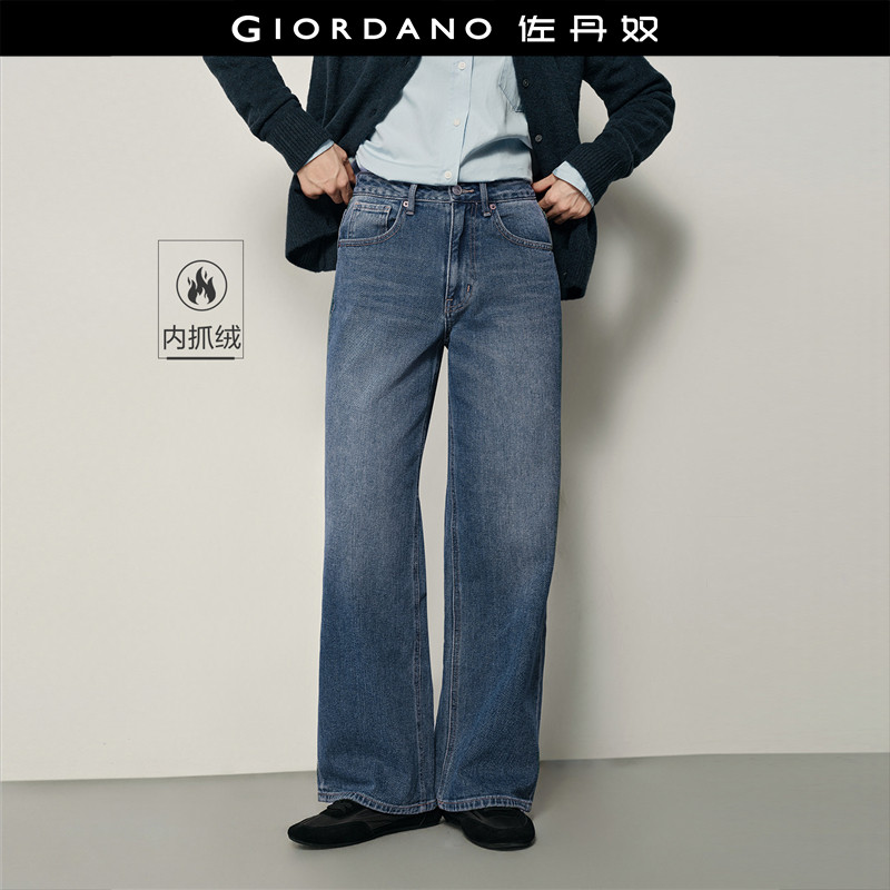 【韩国同款】佐丹奴秋冬新款纯棉内抓毛水洗阔腿牛仔裤女05414943