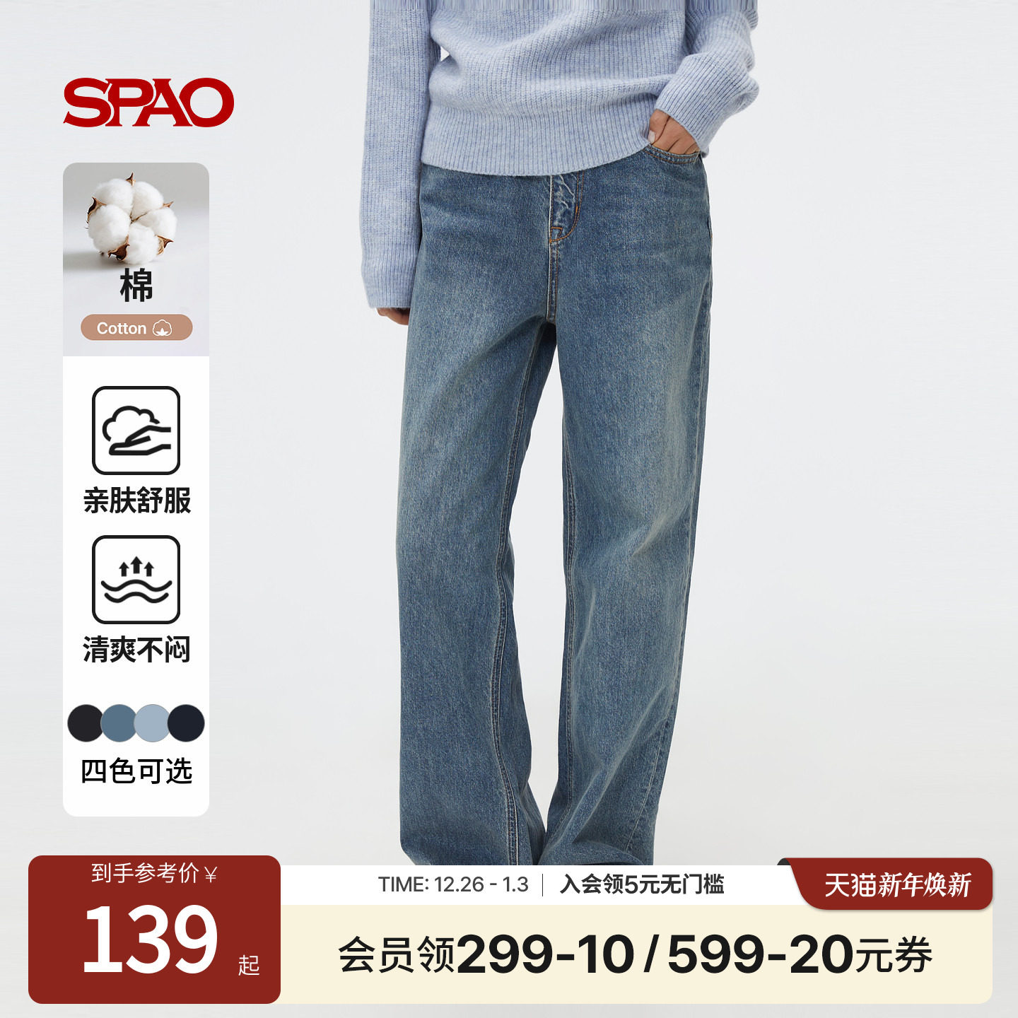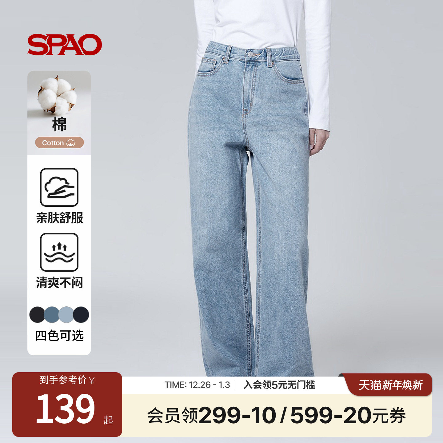 SPAO韩国同款25年秋季女直筒水洗阔腿裤宽松四季款拉链牛仔裤