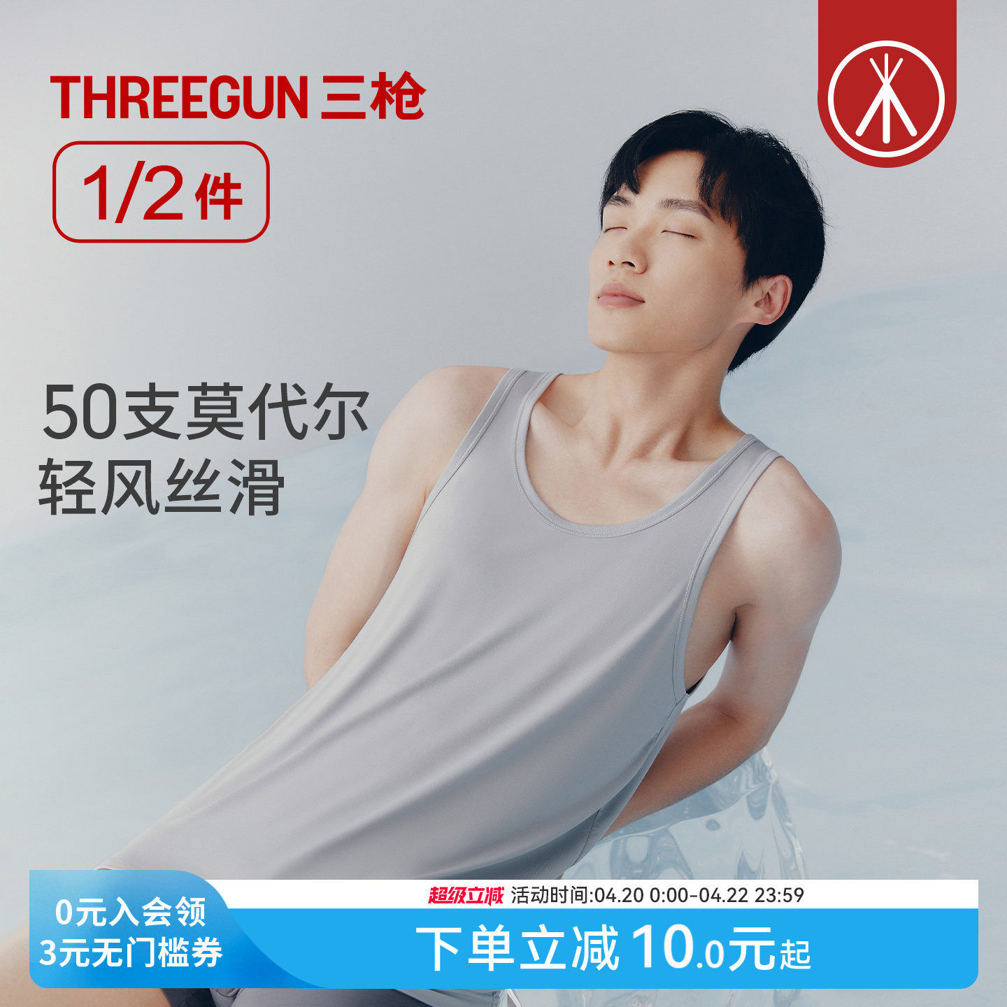 三枪男背心春夏高支莫代尔无痕裸感吸汗透气高弹打底抗菌防螨内搭