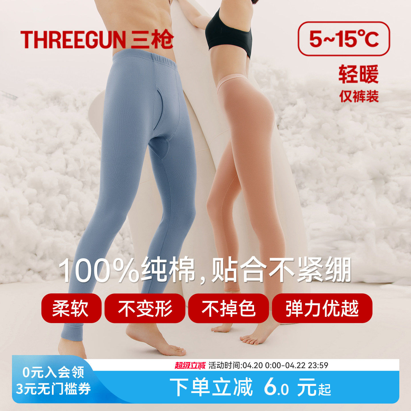 三枪保暖下装男女纯棉弹力秋裤秋冬新款抗静电打底裤保暖裤情侣款