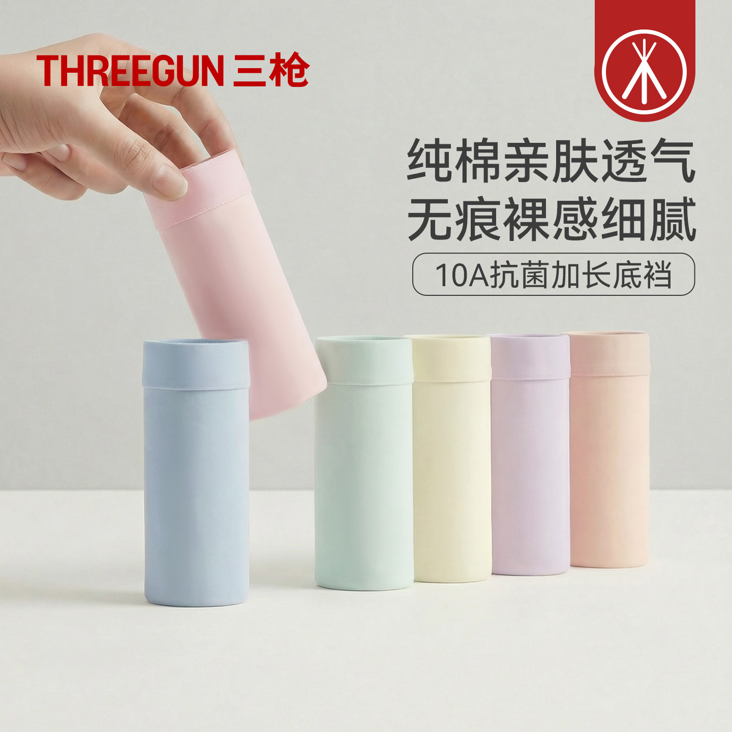 [3条]三枪内裤女士60支无痕/高腰加长裆10A抗菌纯棉裆三角裤女生