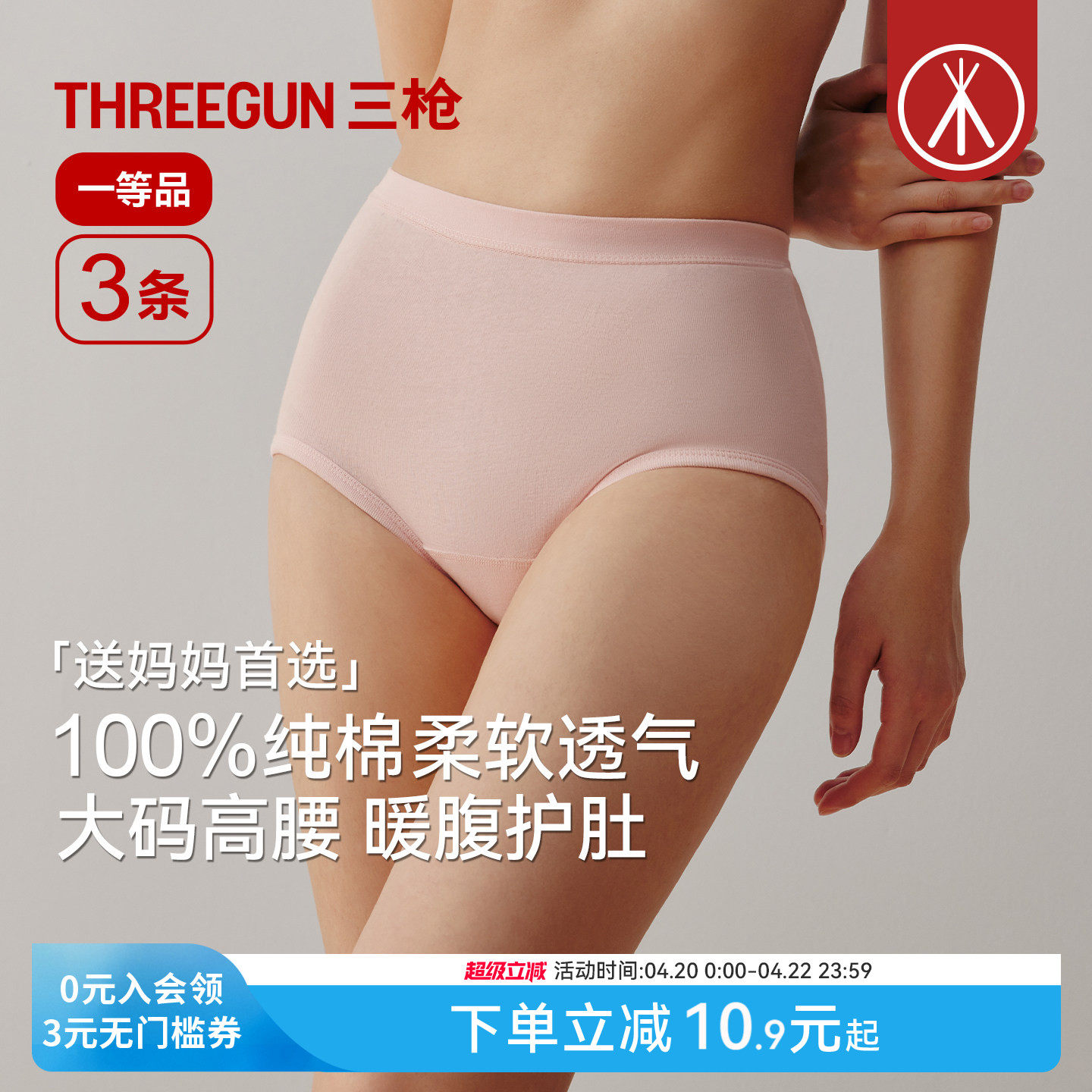 [3条]三枪内裤女纯棉三角裤7A抗菌高腰收腹防夹臀中老年春夏款