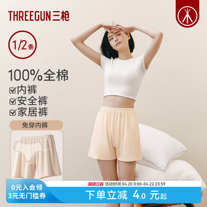 [1/2条]三枪女纯棉安全裤内裤二合一5A抗菌透气平角宽松睡裤大码