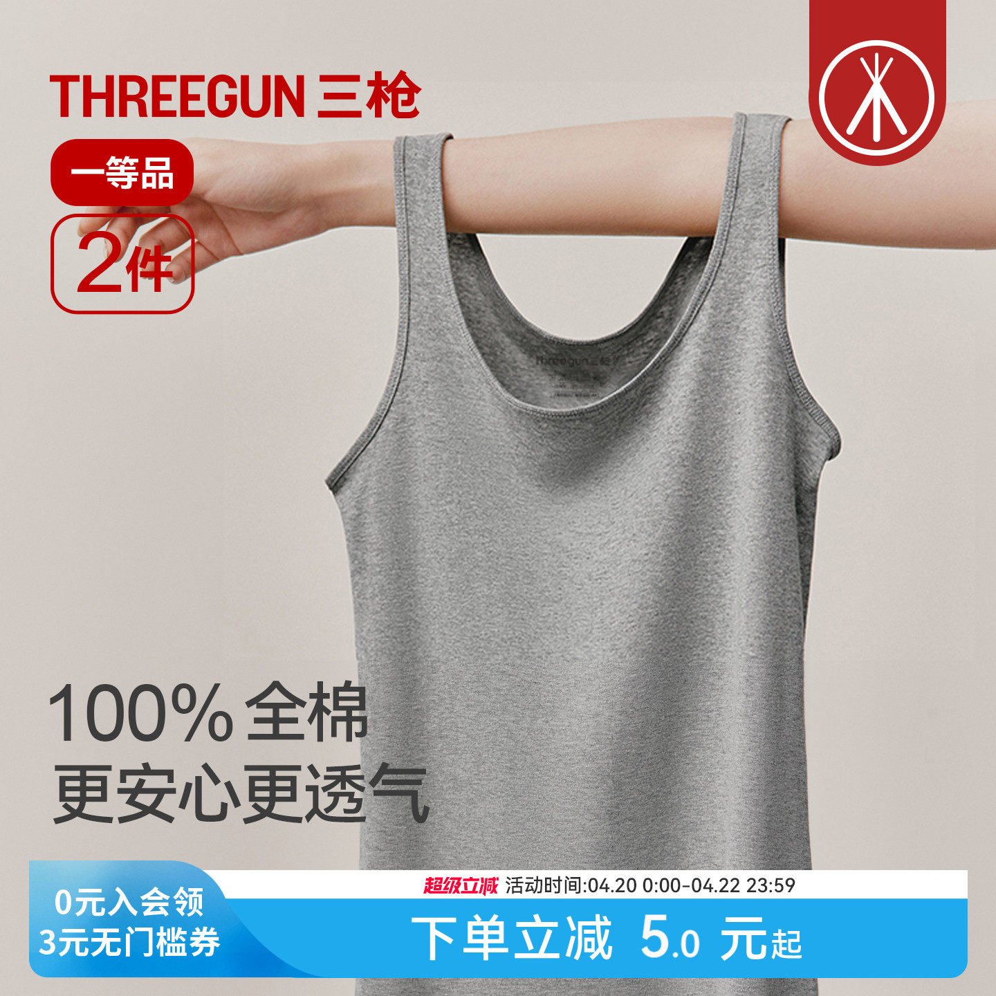 [2件]三枪背心女夏纯棉柔软无侧缝吊带外穿全棉裸感内搭2026新款