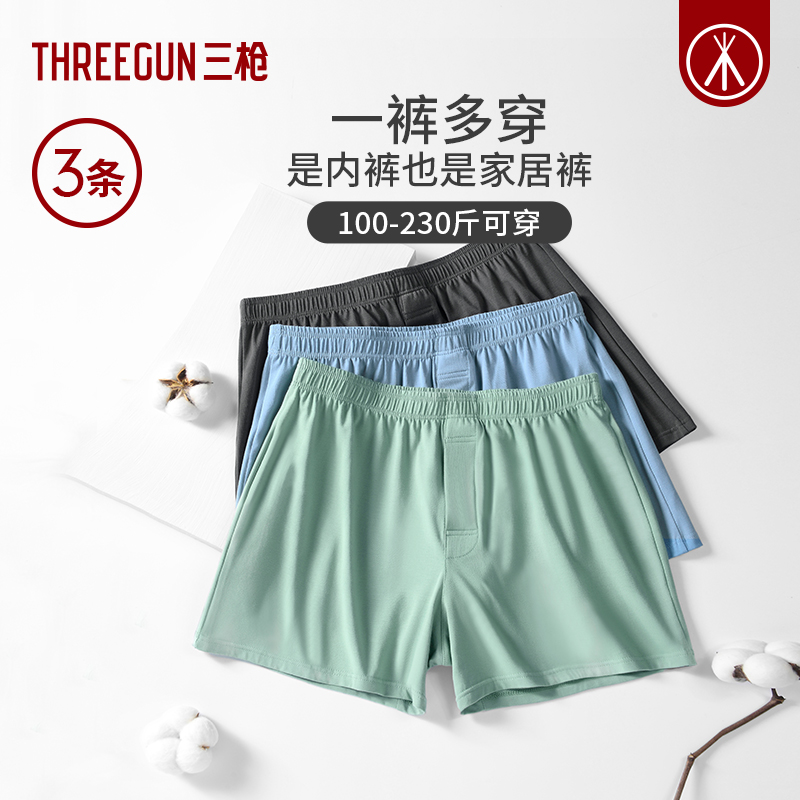 [3条]三枪男士阿罗裤纯棉家居短裤沙滩胖子大码男内裤平角肥佬