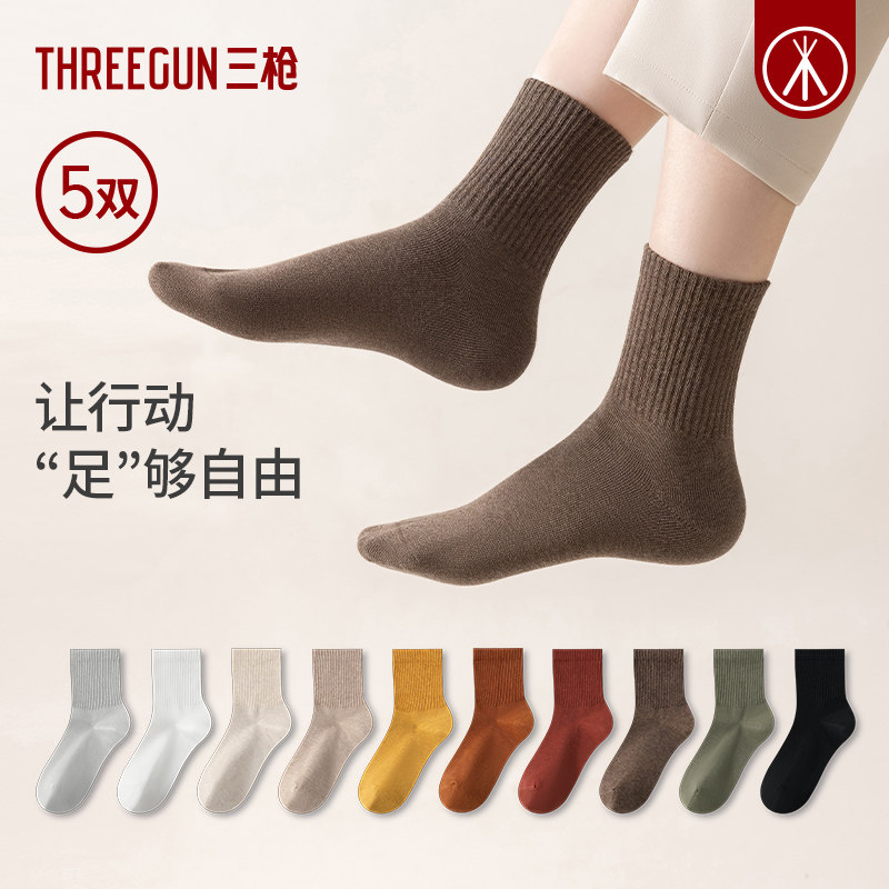 [5双]三枪袜子10A抗菌中筒袜男女情侣防臭四季通用防滑抗起球棉袜