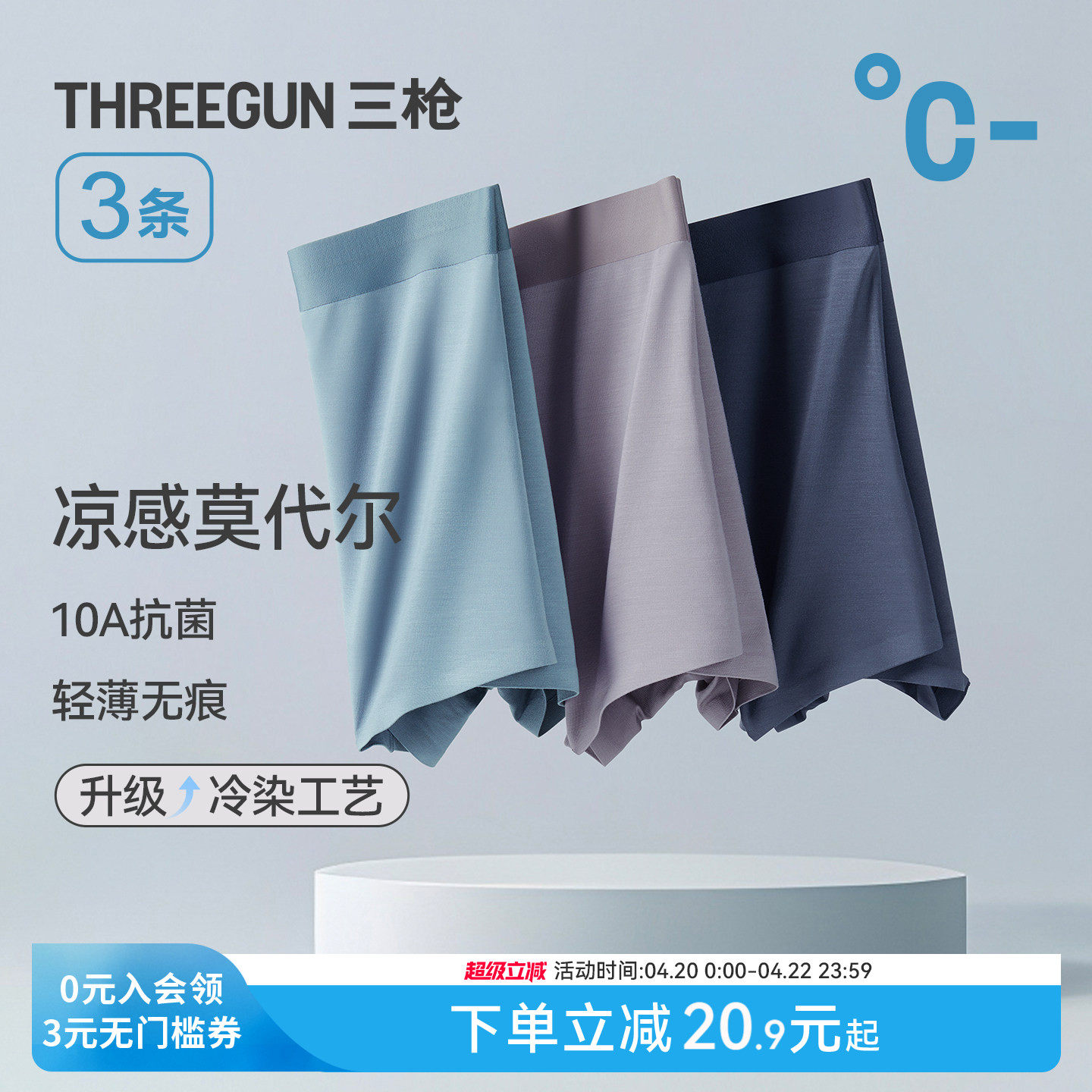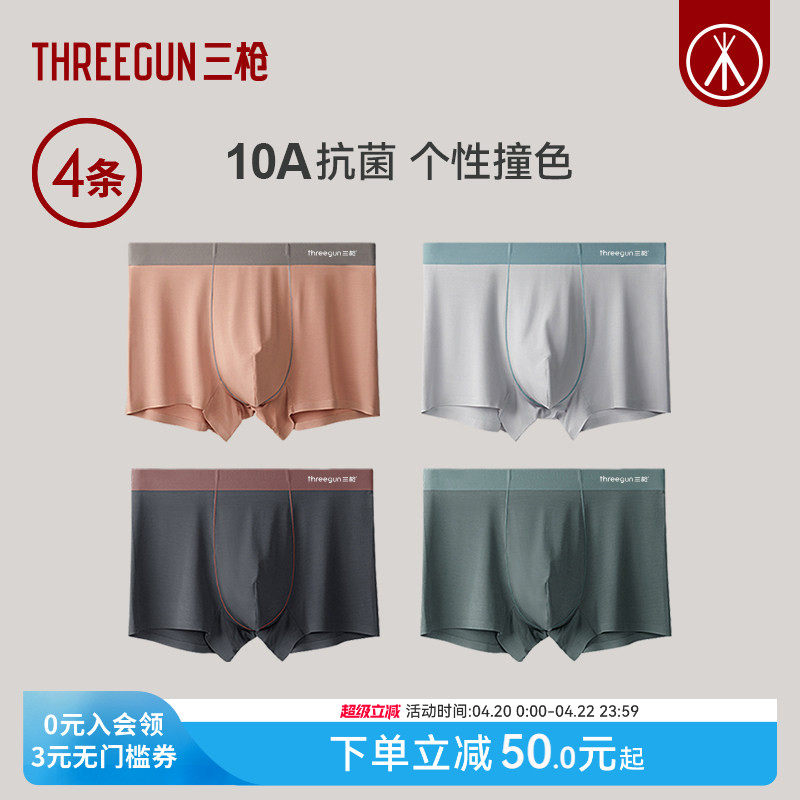 [3条]三枪内裤男10A抗菌顺滑莫代尔四角无痕裸感防磨短裤运动