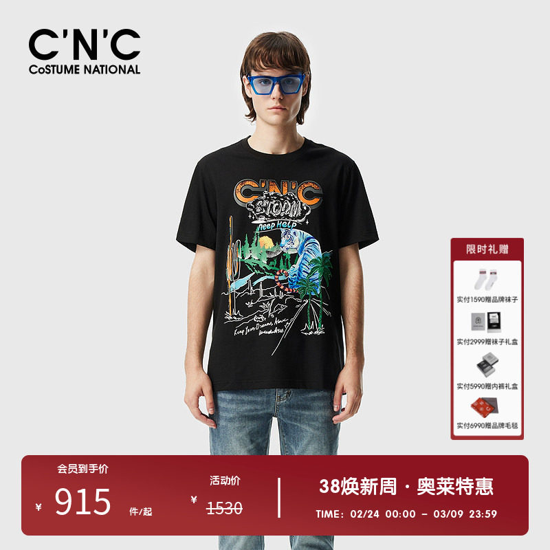 【重工插画风】CNC男装奥莱春夏新品涂鸦印花轻奢虎头短袖T恤重工