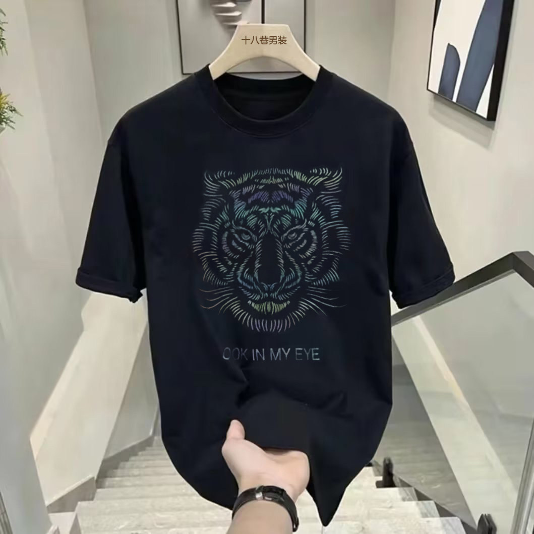 2026夏季纯棉时尚短袖男反光T恤虎头印花半袖衫潮男百搭宽松体恤