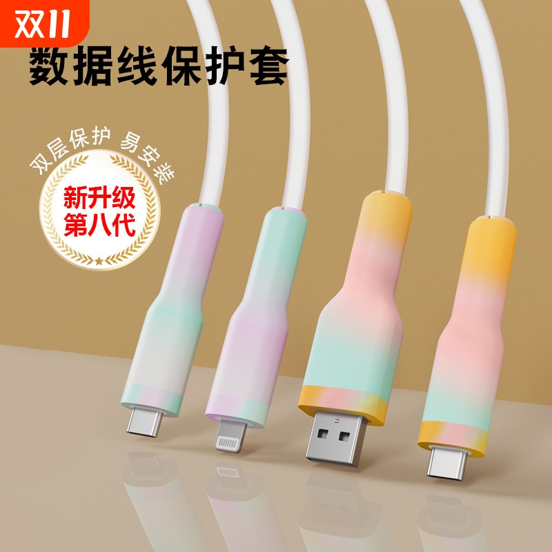 防断裂修复神器适用于苹果17pro一加ACE5Pro防尘数据线硅胶保护套创意拼接款vivo小米15OPPOFindx8通用缠绕绳