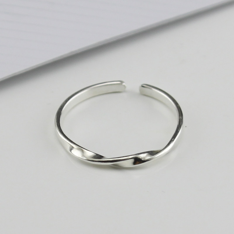 莫比乌斯带纯银戒指简约女款指环细光面学生清新素银百搭开口均码