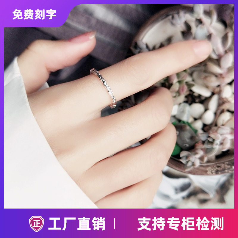 s925清新文艺纯银竹节戒指学生日韩简约对戒食指女尾戒潮品闭口