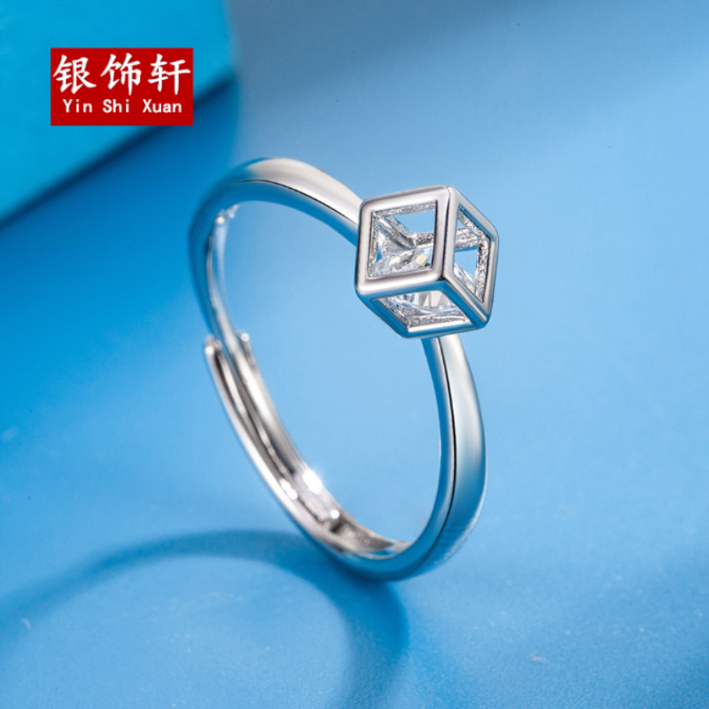 S925纯银百搭学生魔方戒指食指戒银饰简约尾戒指环清新个性女