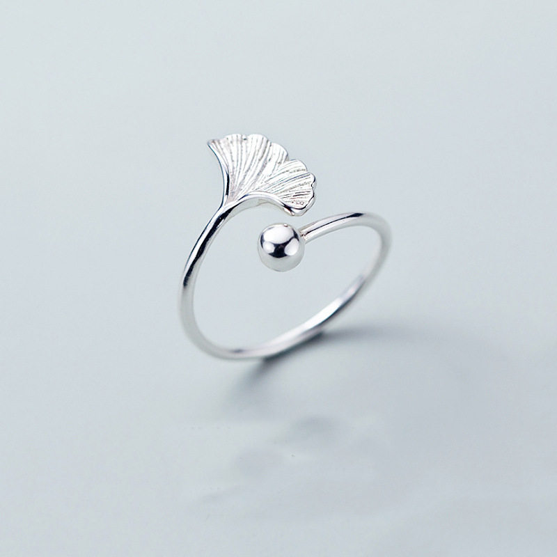 文艺银杏叶S925纯银戒指 女韩国小清新学生 气质简约个性开口戒指